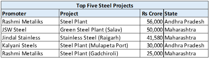 Fresh proposals in the Basic Chemicals sector rose from Rs 2,36,720.61 crore to Rs 4,35,711.39 crore, and the Electronics segment saw investment increasing from Rs 1,54,898.17 crore to Rs 2,12,118.11 crore. Among the high-ticket projects announced in the Basic Chemicals sector were Adani Enterprises’ Rs 1,54,000 crore coal gasification projects in Odisha and Maharashtra, and the Green Hydrogen and Ammonia projects of JK Srivastava Hynfra and Yamma in Andhra Pradesh, valued at Rs 35,000 crore and Rs 20,000 crore, respectively.