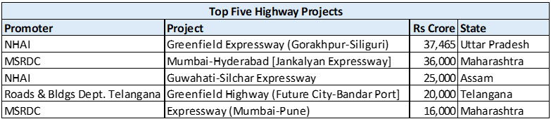 Among the sub-sectors, Transport Services remained the principal component, accounting for Rs 11,11,361.00 crore, up 31.50 percent over FY2025, though its share in total investment was almost unchanged at around 19 percent. Roadways posted only moderate value growth of 16.70 percent and saw its share decline from 11.02 percent to 9.75 percent. The top five highway projects are listed below: