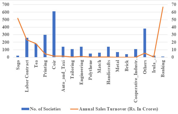 Figure 3 gives Financial Performance of Industrial Cooperative Societies like wages, annual sales turnover and profit.