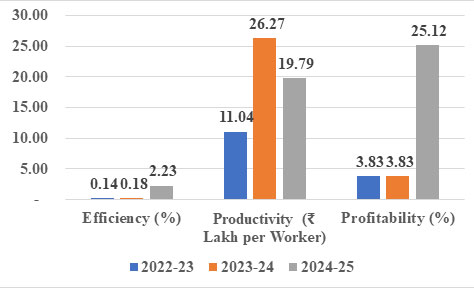 Figure 4 gives Efficiency, Productivity per worker and profitability of Industrial Cooperative Societies over past three years.